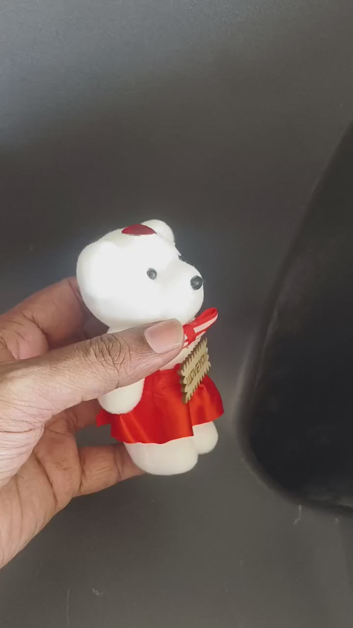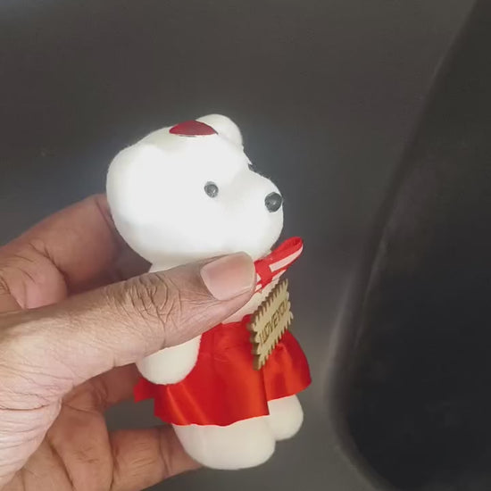 Surprise someone special with this irresistibly cute Mini Love Bear Keychain, dressed in a vibrant red skirt and bow, and holding a sweet wooden plaque that says "I LOVE YOU". This fuzzy little teddy is more than just a keychain—it's a pocket-sized bundle of love, perfect for gifting on romantic occasions or as a daily reminder of affection.