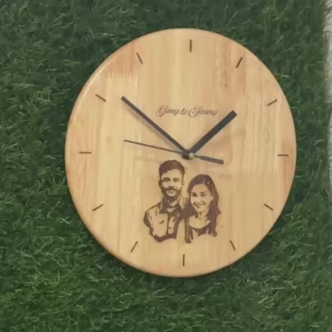 Turn moments into timeless memories with our Personalized Wooden Photo Wall Clock. Crafted from premium natural wood, this elegant wall clock is beautifully engraved with a custom portrait and names, making it a one-of-a-kind keepsake for couples, anniversaries, weddings, or housewarmings. The minimalist design with fine detailing adds a rustic charm to any room, while the silent sweep mechanism ensures a peaceful environment.
